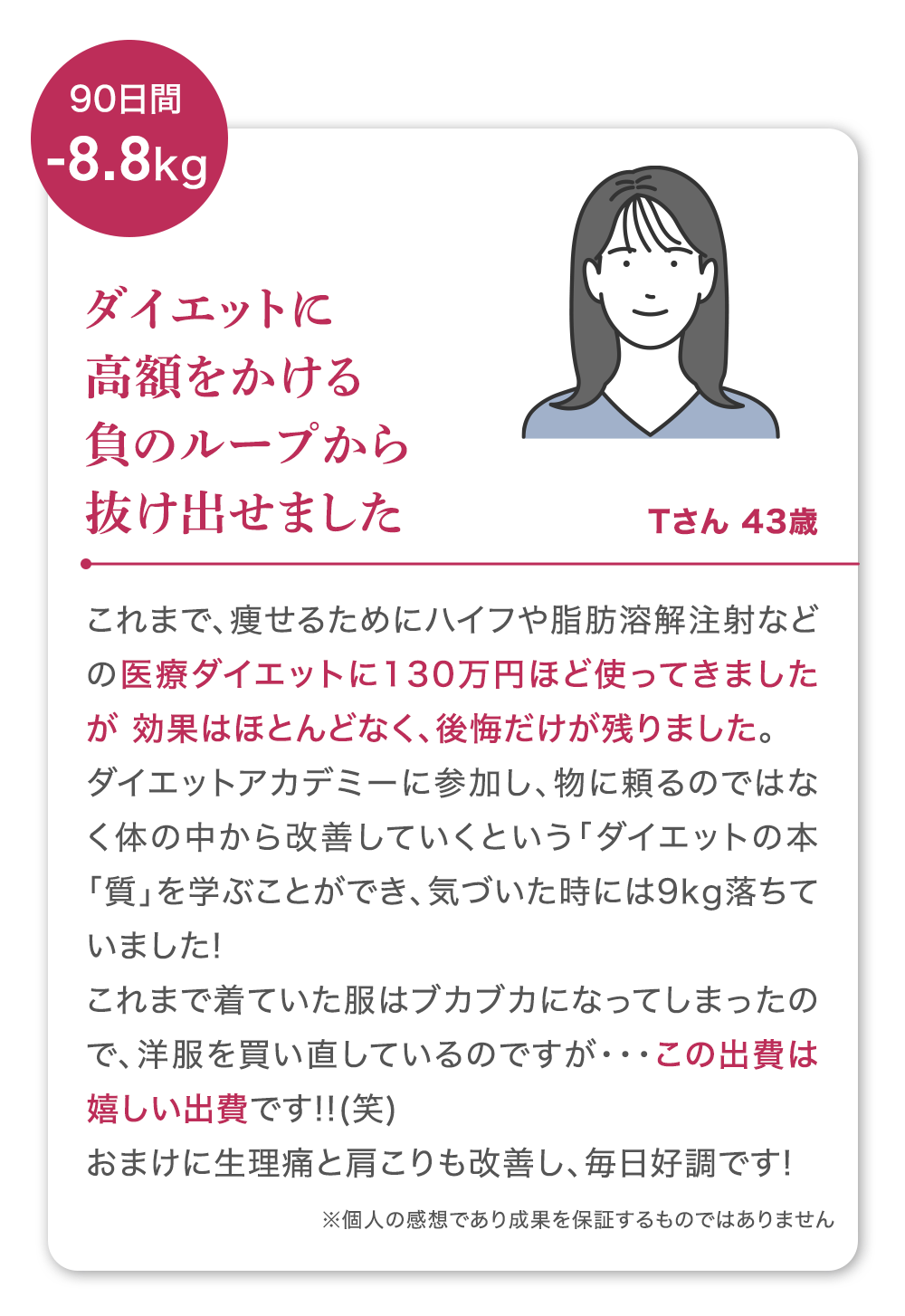 ・一時的に痩せられても結局続けられないからリバウンドしてしまう
