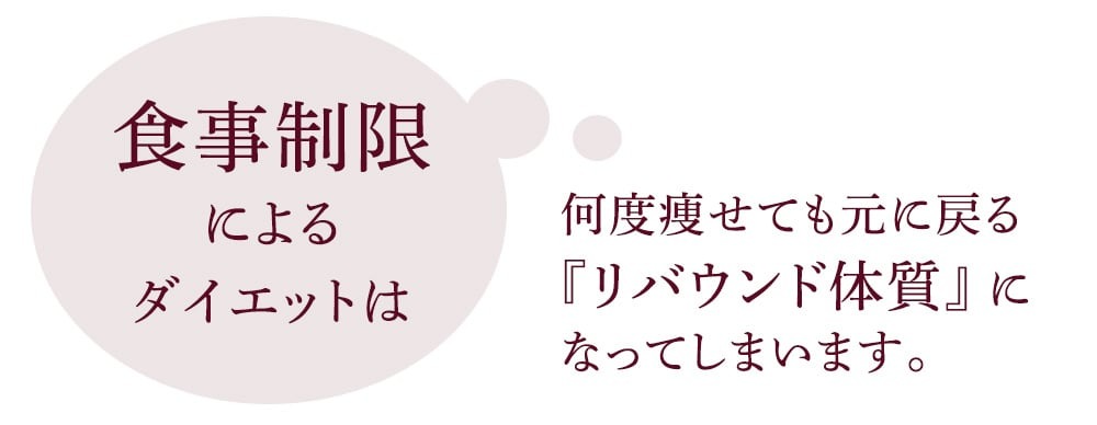 ダイエットに過度な食事制限は厳禁! わざわざ『痩せにくい体』を作って リバウンドの準備をしているのが 食事制限によるダイエットです。