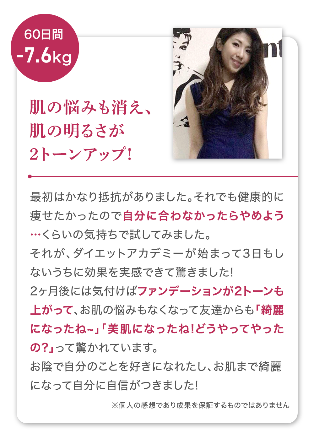 これは医師の立場から見ても同意見で、ただ体重が減っても、便秘や肌荒れ、老けたりすると意味がないですからね。あくまでも健康的なダイエット方法であるところが、他のダイエット方法と違う所だと思います。