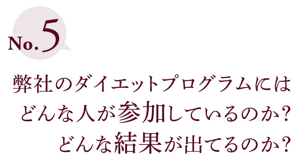 弊社がご提供するダイエットプログラムには、どんな方々が参加し、どのような結果を出しているのか?   年代ごとに平均して何kg痩せているのかも、すべての参加者のデータを元に包み隠さず公開いたします。